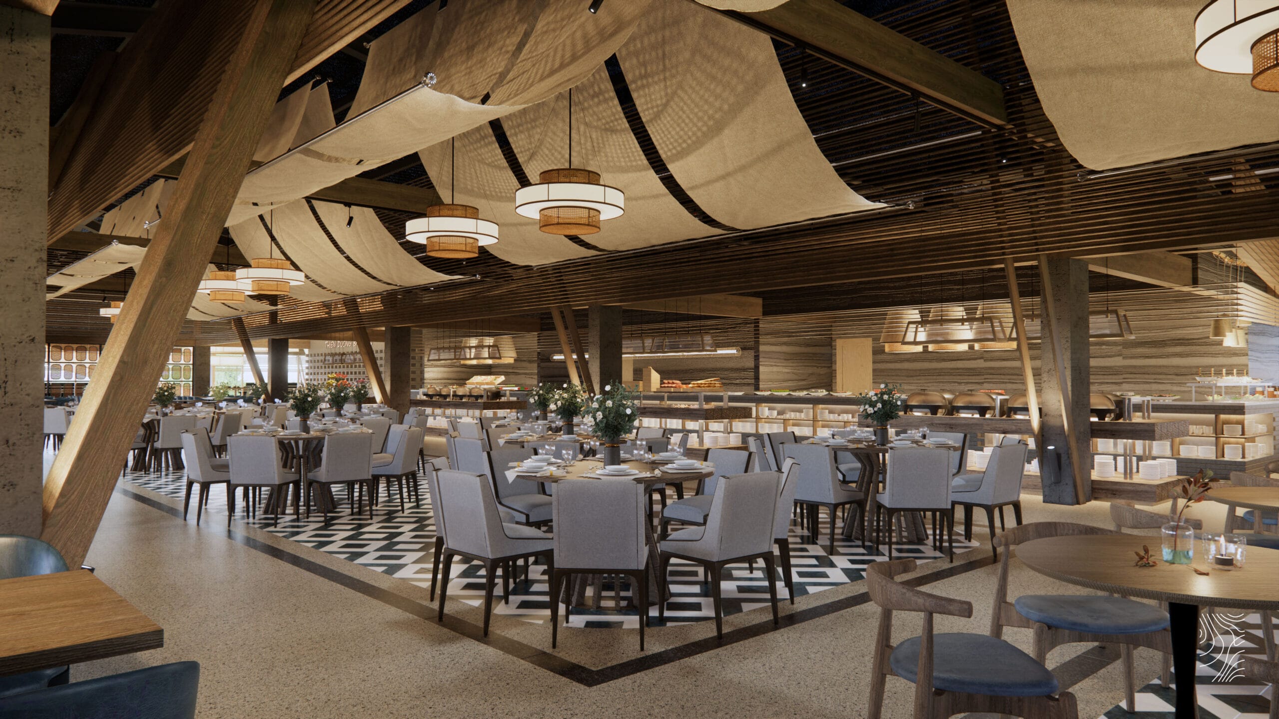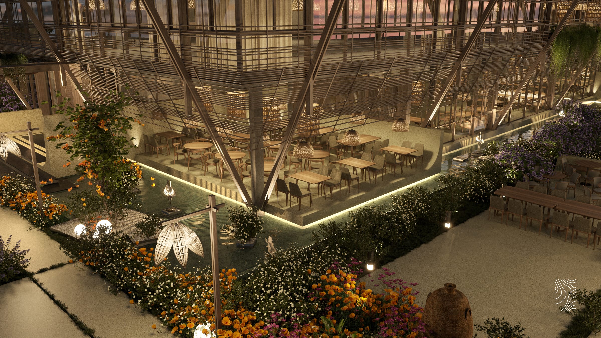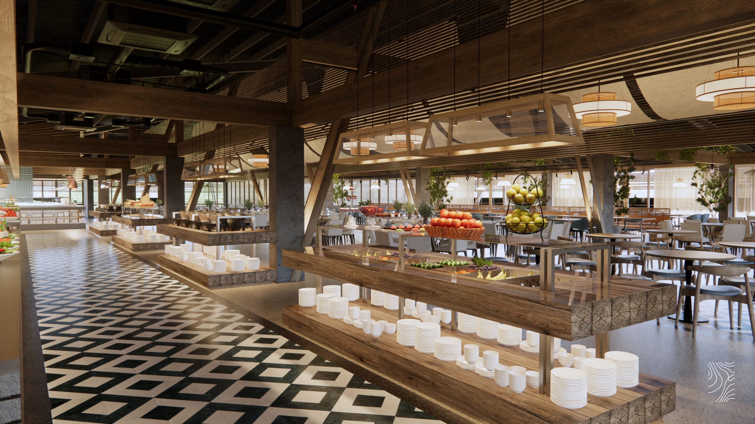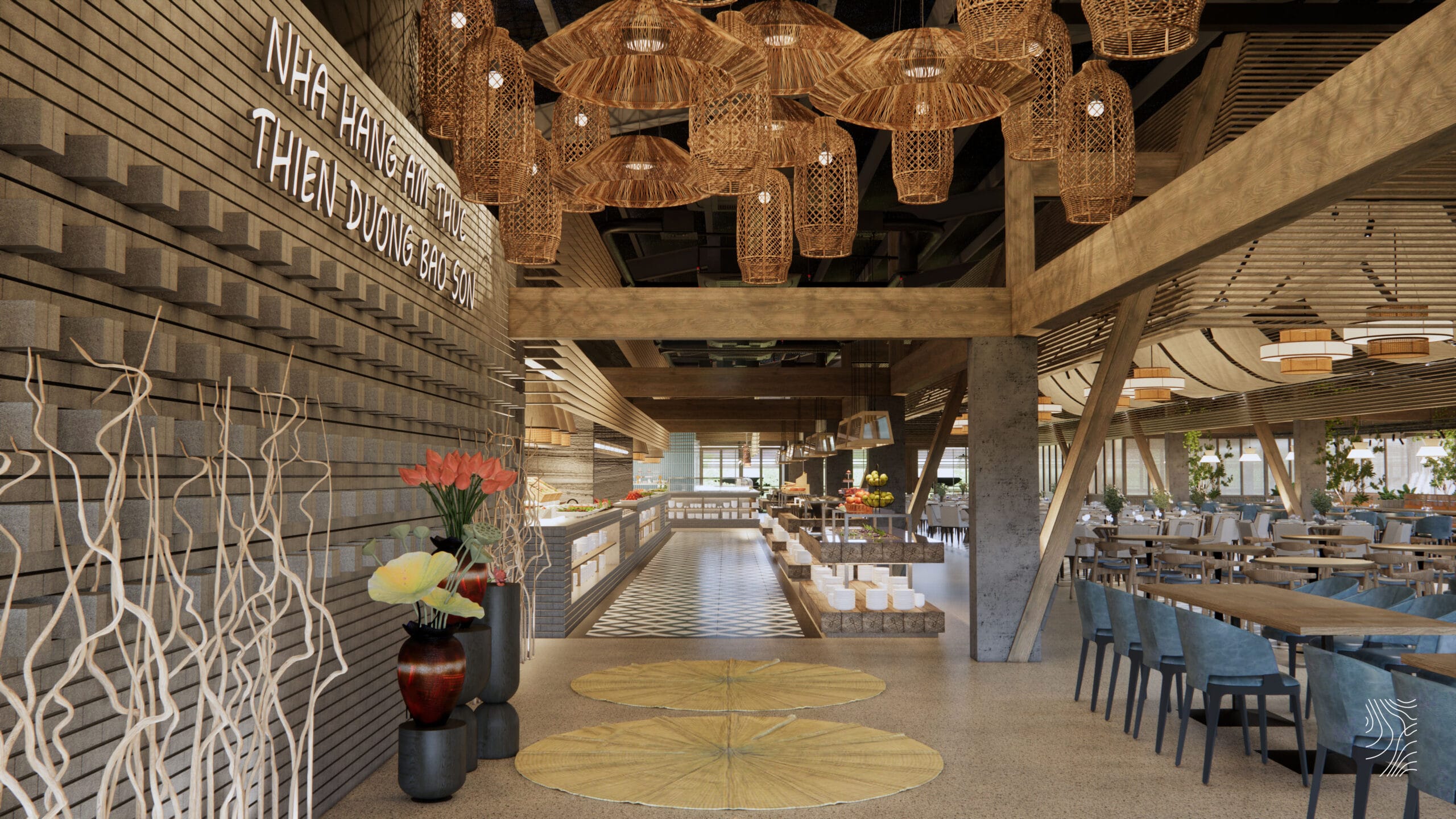 Dự án nhà hàng ẩm thực của Thiên Đường Bảo Sơn là một không gian ẩm thực rộng lớn, sức chứa hơn 1000 chỗ ngồi, đầy đủ các phong cách ẩm thực được thiết kế để mang đến trải nghiệm ẩm thực độc đáo và ấn tượng. Với diện tích hoành tráng, nhà hàng không chỉ là nơi thưởng thức các món ăn đặc sản mà còn là một tác phẩm nghệ thuật, hòa quyện giữa kiến trúc hiện đại và không gian thiên nhiên. Mỗi khu vực trong nhà hàng được chăm chút tỉ mỉ, tạo ra những không gian mở kết nối với vườn cây xanh tươi mát, hồ nước và những tiểu cảnh nghệ thuật.