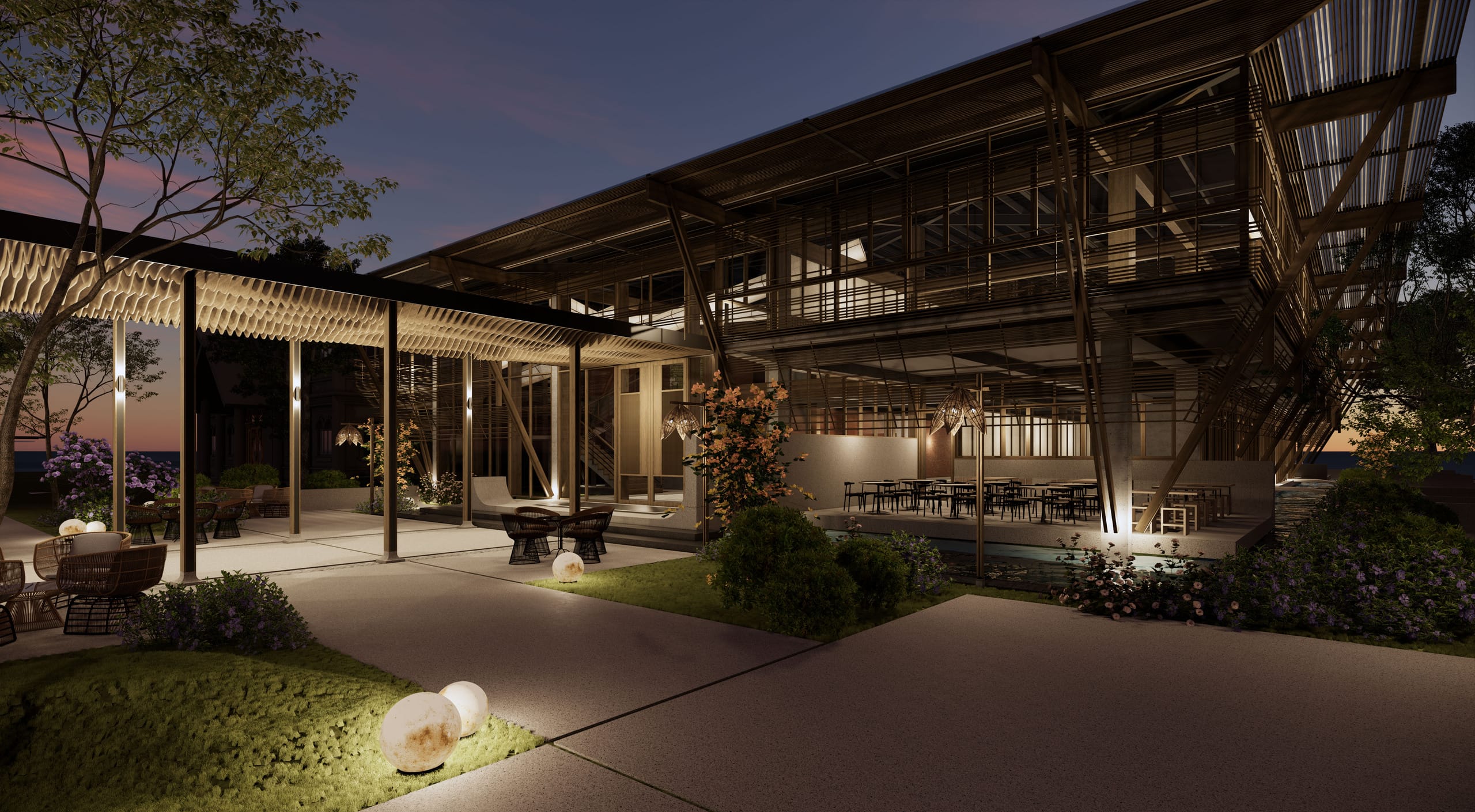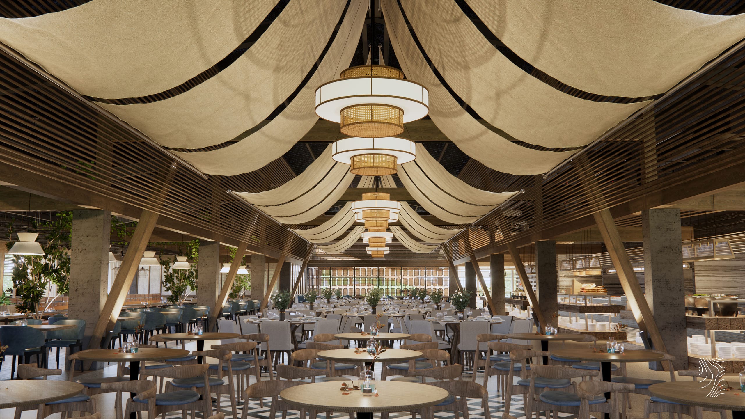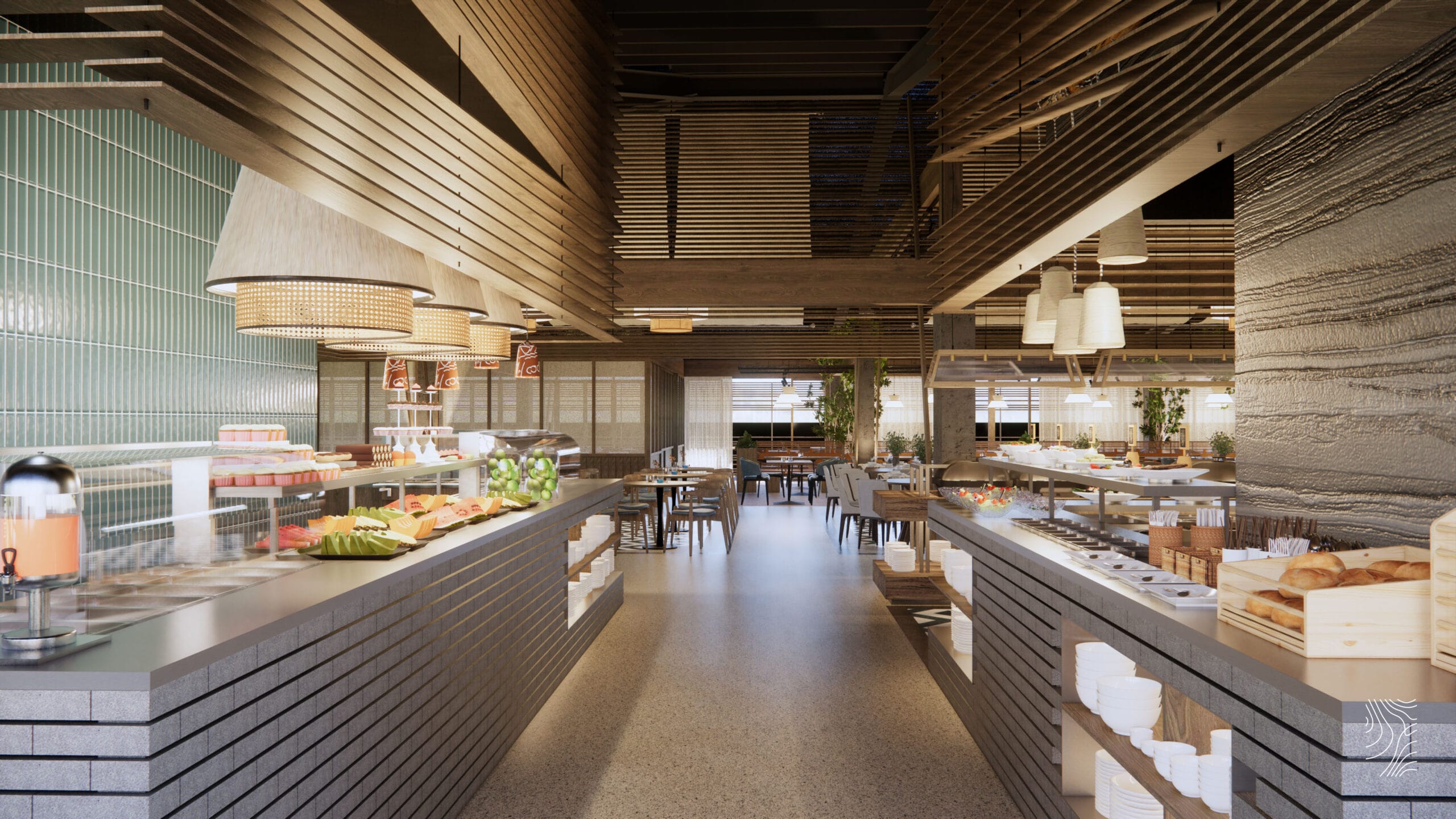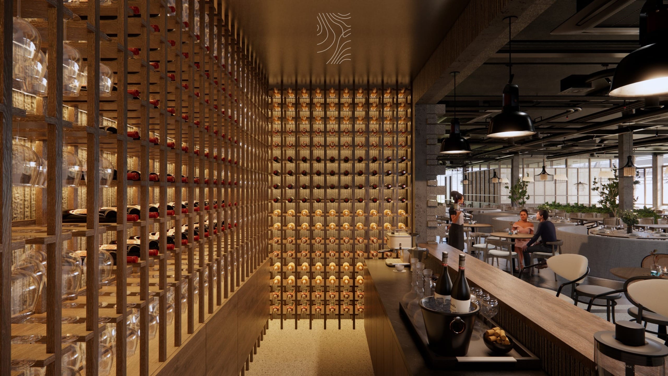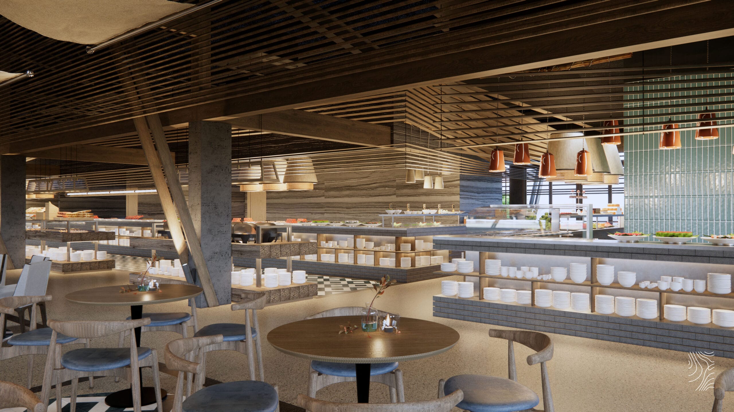 Nhà hàng được thiết kế theo phong cách đương đại với những đường nét tinh tế, kết hợp các yếu tố truyền thống và hiện đại để tạo ra không gian vừa sang trọng, vừa gần gũi. Chất liệu gỗ tự nhiên, đá tự nhiên và kính trong suốt được sử dụng để tạo sự thông thoáng và ánh sáng tự nhiên. Tầng 1 được bố trí với phòng ăn À la carte lớn cùng các phòng ăn 50 chỗ ngồi, phòng ăn Vip 10 chỗ ngồi. Trung tâm của tầng 2 nhà hàng được thiết kế với một khu vực lớn dành cho sự kiện, hội nghị, hay các bữa tiệc lớn, nơi mọi người có thể thưởng thức ẩm thực đặc sắc trong một không gian ấm cúng, nhưng cũng rất hiện đại.