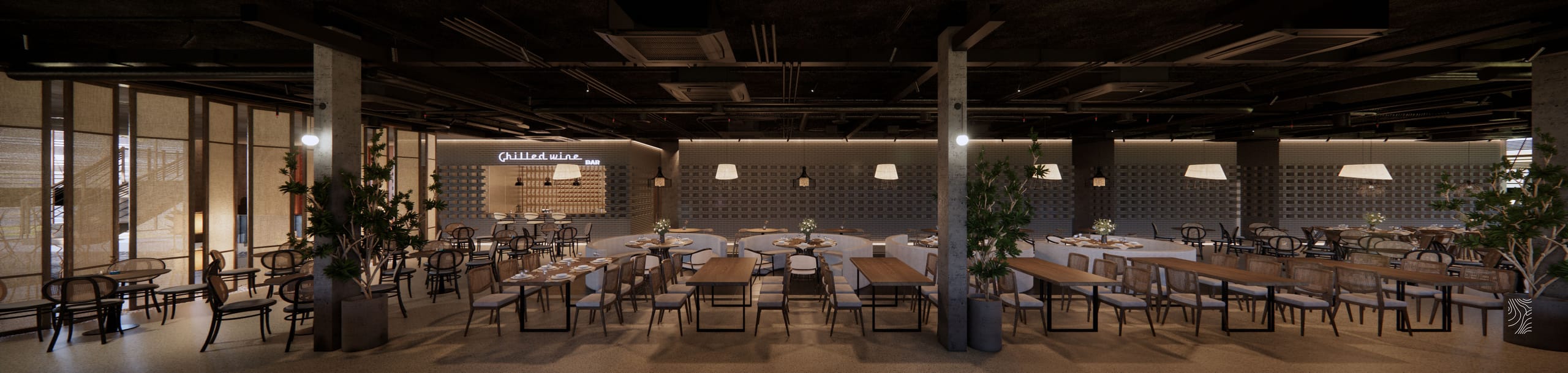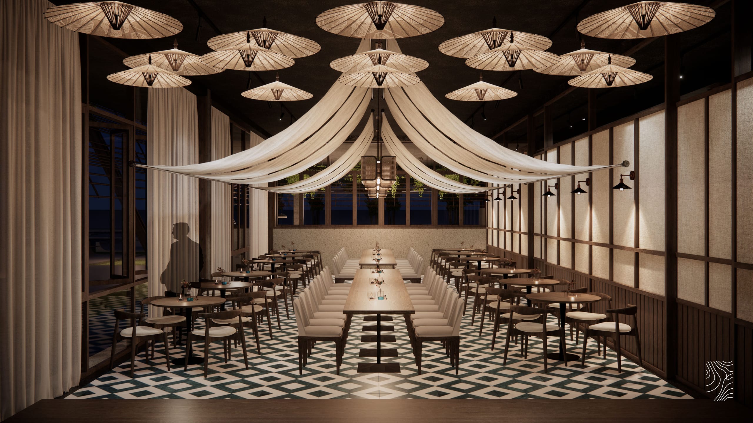 Từng chi tiết trong thiết kế đều hướng đến việc tạo ra một không gian hài hòa, dễ chịu cho thực khách, nơi mà sự sáng tạo trong ẩm thực có thể thăng hoa cùng với không gian thoải mái và đẳng cấp.