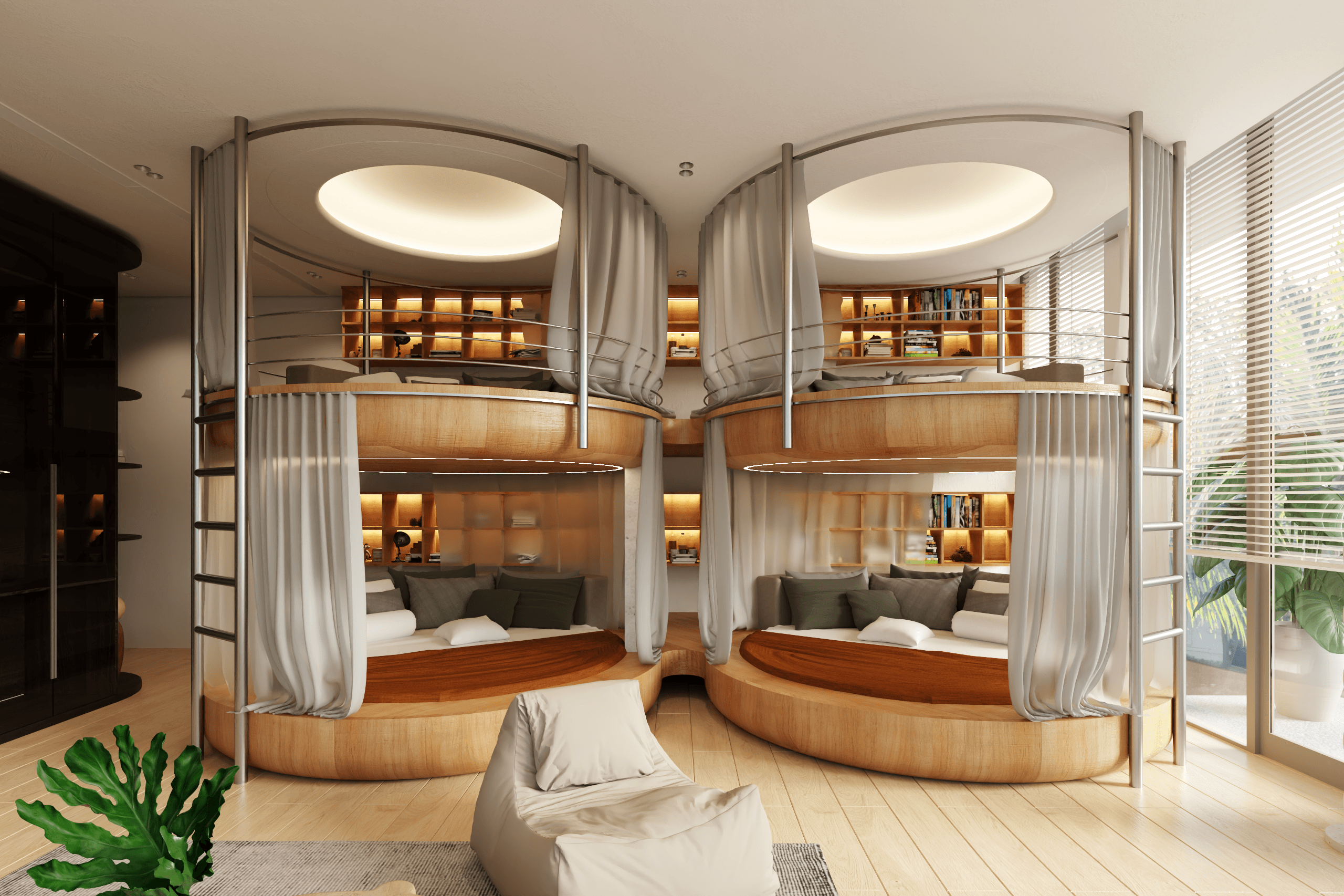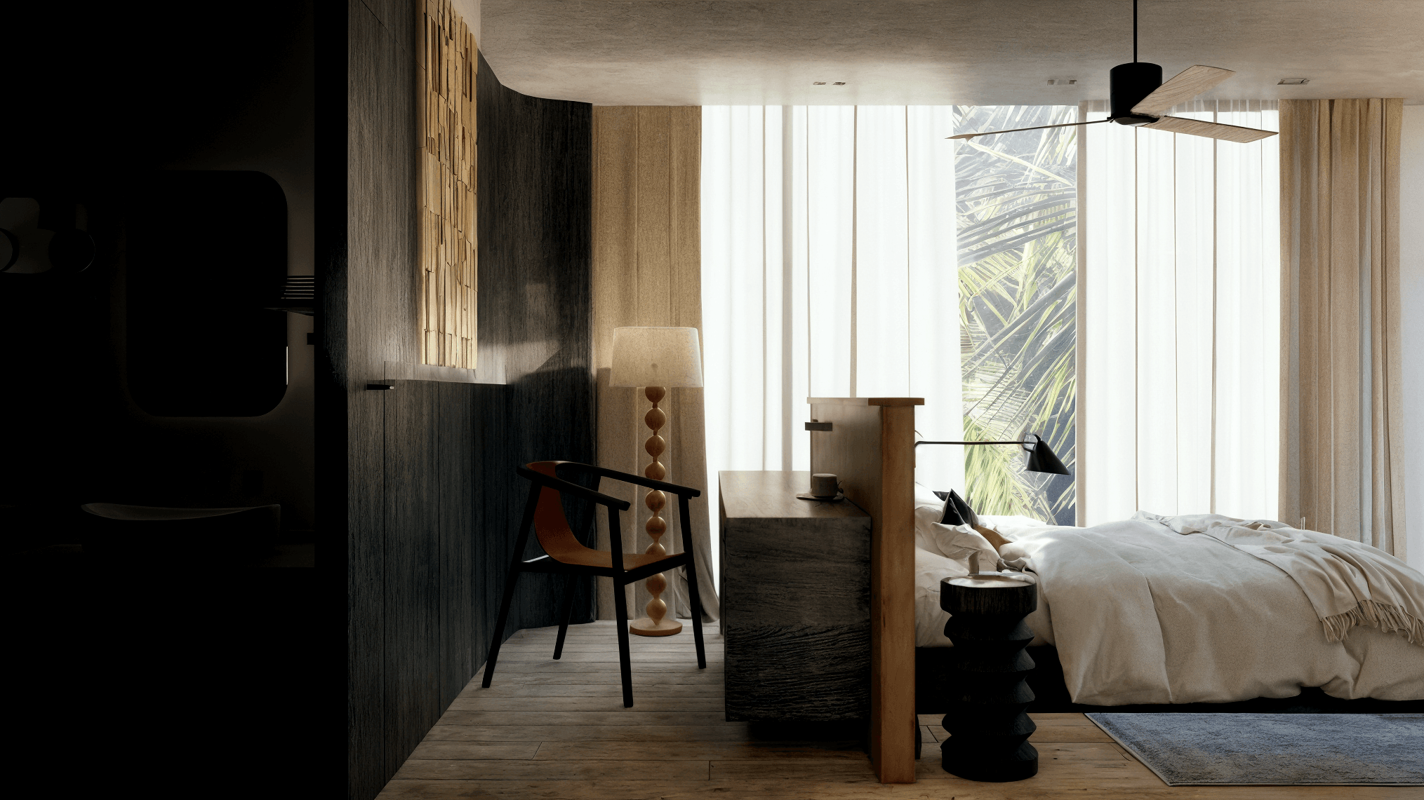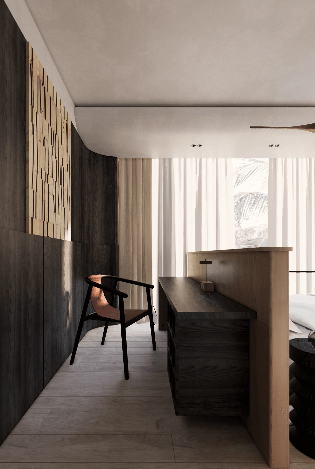 Lấy cảm hứng từ những lát cắt sắc nét của các hòn đảo biển, sự vươn mình mạnh mẽ của những con thuyền ra khơi và vẻ đẹp hoang sơ, kiên cường của những mỏm đá nhô cao trước sóng gió….Các khối kiến trúc được tối giản với những đường nét góc cạnh mạnh mẽ, & gam màu tối tạo cảm giác như một mũi tàu hay mỏm đá vững chãi.